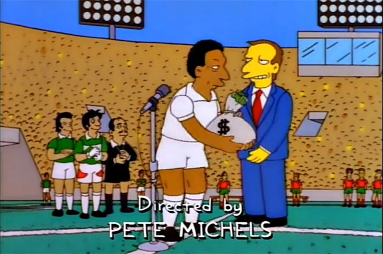 Показательный эпизод, связанный с рекламной деятельностью: Пеле был продемонстрирован в одной из серий популярного мультфильма «Симпсоны». Там Король футбола выходит к микрофону, говорит короткую рекламную речь и сразу же получает за это мешок денег. Фактически так и было на самом деле.
