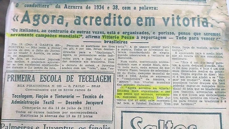Если в Бразилии было настроены восстановить статус-кво, поднять свой моральный дух и снова обрести уверенность в себе, то в Италии газеты демонстрировали европейский оптимизм на грани самоуверенности, записывая заранее себе в актив еще один мировой титул, вспоминая чемпионаты мира 1934 и 1938 годов, выигранные Италией.