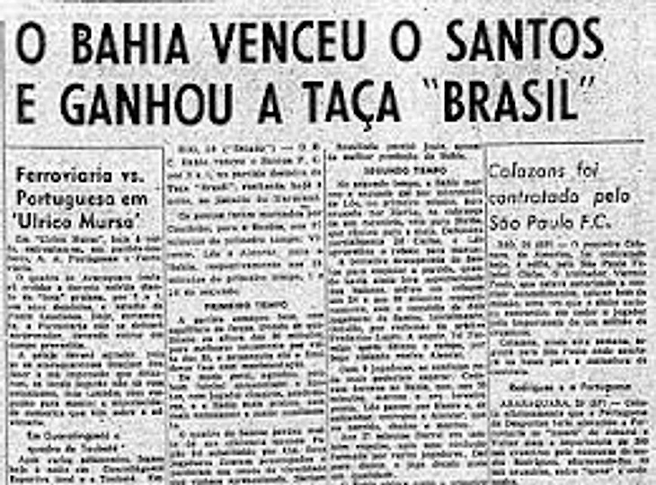 Фаворитами турнира, конечно же, были представители ранее упомянутых городов. "Сантос" с Пеле и "Васко да Гама" с чемпионом мира Беллини и бомбардиром Пингой. Последние в полуфинале неожиданно уступили скромной "Байе", которая лишь на уровне своего штата имела авторитет и успехи. Итак, в финале сошлись "Сантос" и сама "Байя".