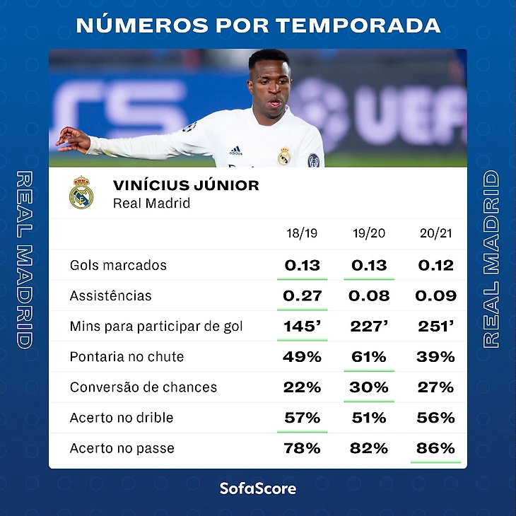 Сезон 20/21-31 матч, 10 голов, 5 голевых, 56 ключевых передач, 34 успешных обводки, 25 отборов.