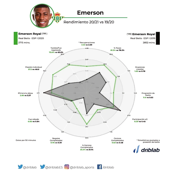Сезон 20/21-24 матча, 3 гола, 7 голевых, 40 ключевых передач, 46 успешных обводок,45 отборов.