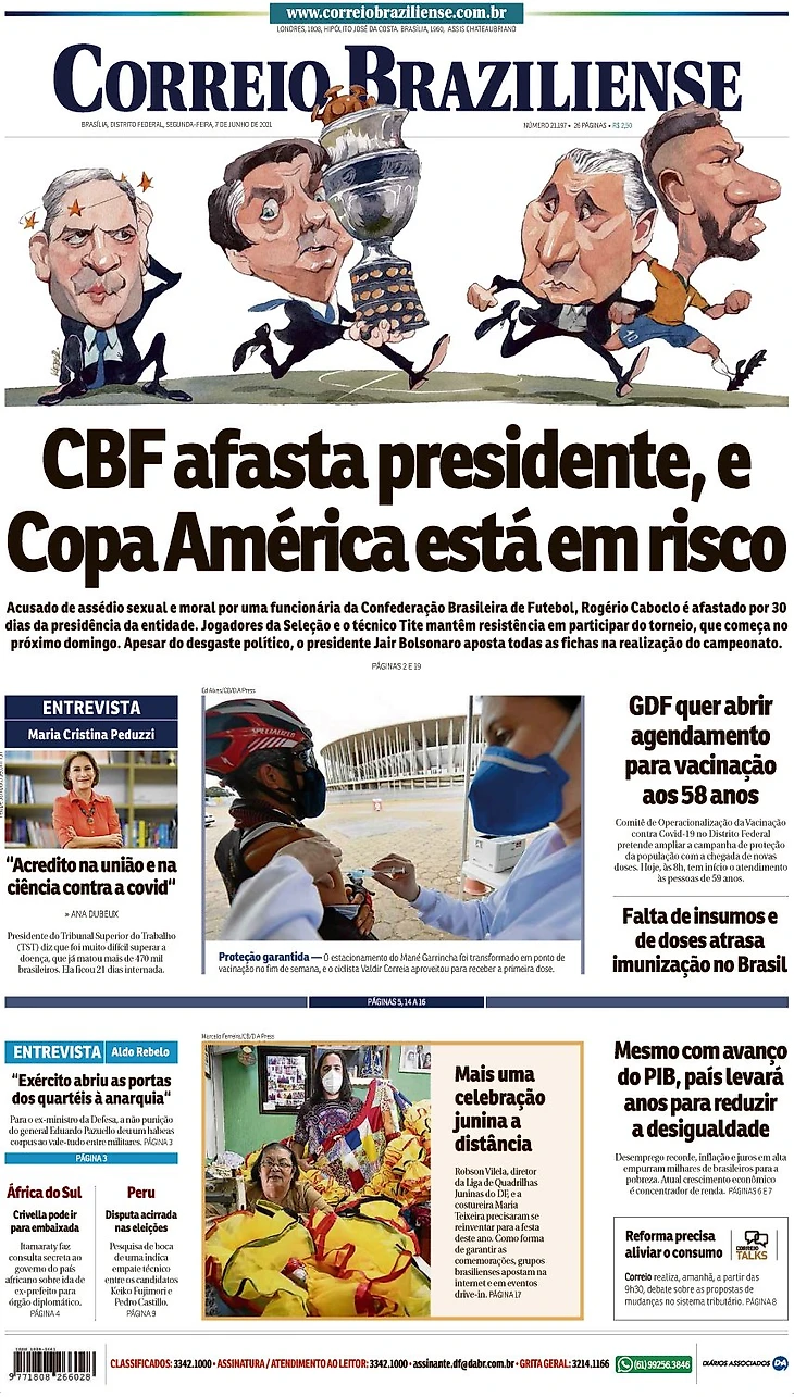 Бурлит бразильское королевство. Кабокло отстранен, пока правда на месяц, на время расследования. Рожерио правда заговорил. С его слов и с Тите у него конфликта нет,увольнять он его не собирался и от Копы игроки не отказывались. Правда насчет подчиненной как-то не хочет говорить ничего. Странно. После того,как комитету по этике были предоставлен почти час аудиозаписей,подтверждающих не очень адекватные поступки главы федерации. Бесятся и в администрации Болсонару, даже вице-президент Бразилии Мурао на эмоциях позволил себе без называния имен кинуть в эфире-пусть подает в отставку, "Куябе" как раз нужен тренер... Но это больше от бессилия. 4 из 6 спонсоров Селесао-MasterCard, Itaú, Ambev и Gol - дали понять,что Тите у руля сборной ДОЛЖЕН остаться. Да и и.о. президента КБФ полковник Антонио Карлос Нунес заявил,что вопрос об отставке Тите не стоит. Соцсети постебались относительно Ренато Гаушо у руля сборной при поддержке Болсонару