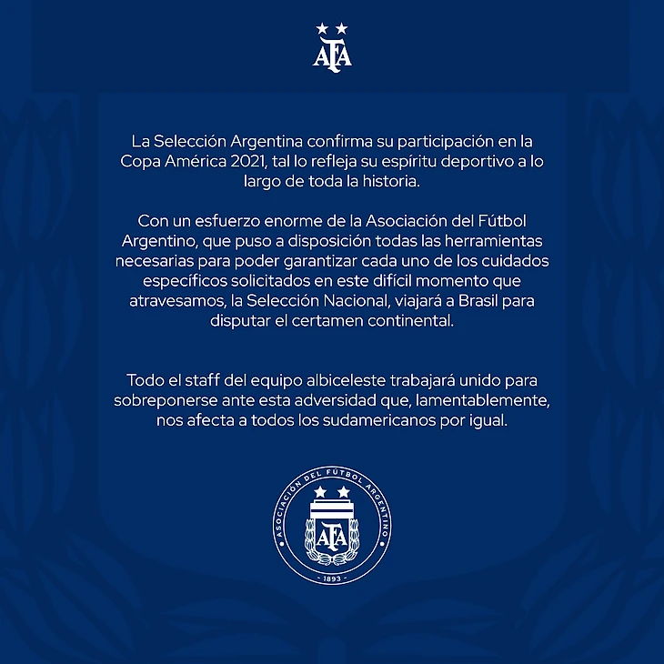 Что будет завтра на пресс-конференции? Не знаю. Давайте ее дождемся. Склоняются к тому,что Бразилия все же выступит на Копе. Будут ли какие-то условия тоже не знаю. Бойкот игроками других сборных провалился после того,как Аргентина первая написала официальное письмо,что целиком и полностью с Конмебол. Ну что ж, дело хозяйское. Почему тогда не на родине?