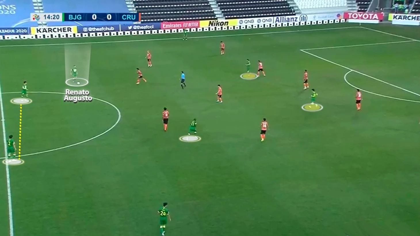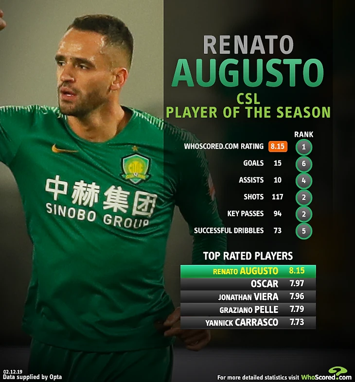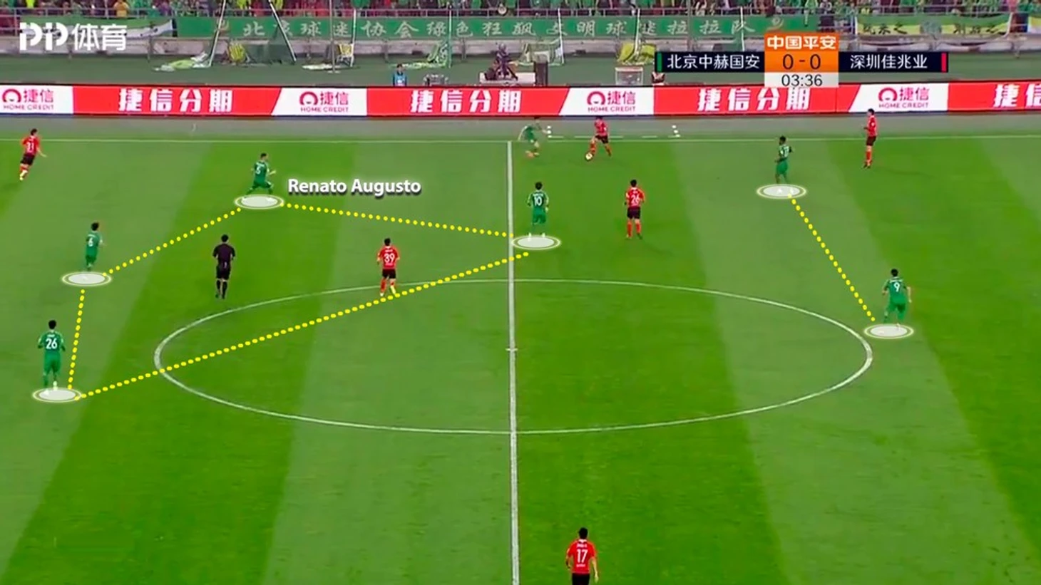 Китайцы, правда использовали Ренато не всегда как левого мейя в расстановке 4-3-3. В 2017-19 немец Шмидт ставил его слева в ромбе, практически фланговым хавбеком.