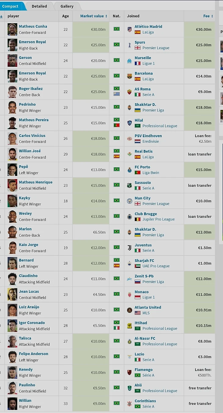 Внутри Европы и из Бразилии поток поинтересней. Тут и переходы околосборников Куньи, Эмерсона, Жерсона и Клаудиньо в более сильные клубы.