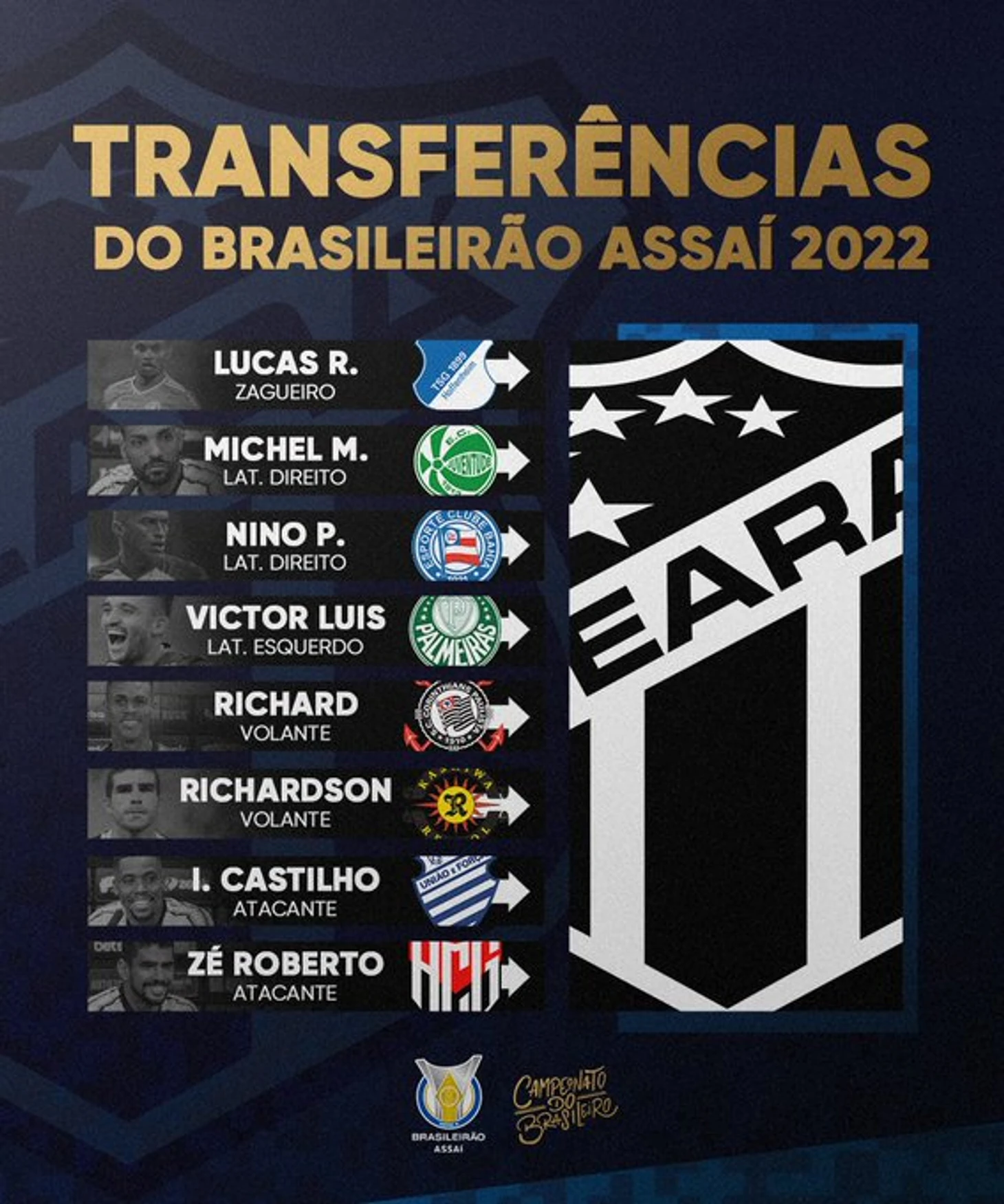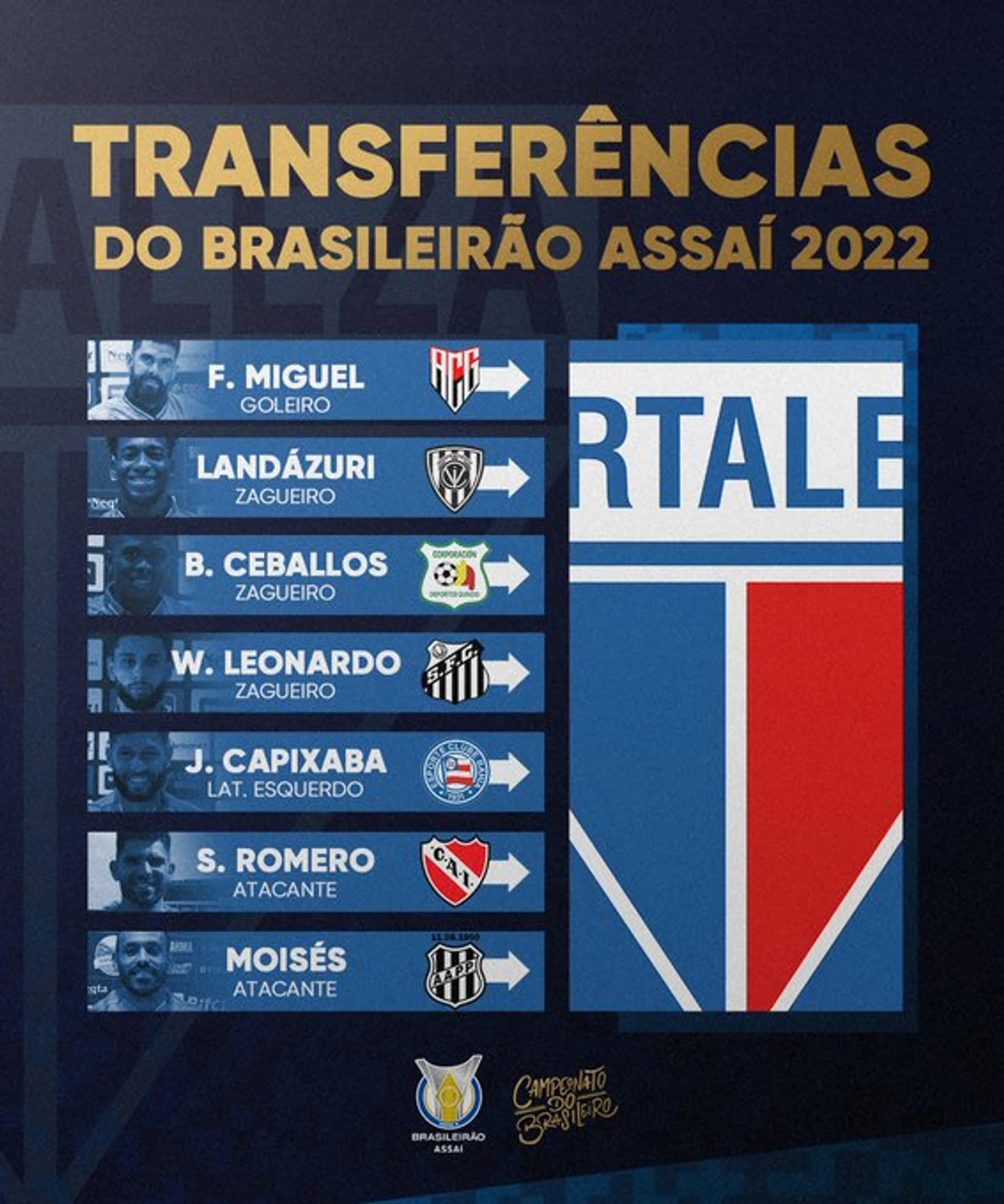 Сенсация прошлого сезона "Форталеза" сохранила главных действующих лиц, в том числе и тренера Войводу, и провела рекордную для себя серию подписаний. Укрепили в первую очередь оборону и атаку, выкупили зарекомендовавших себя в прошлом году арендованных игроков. Ну и ждем от Войводы,что кто-то из малоизвестных игроков в этом списке стрельнет, как те же Криспин или Эдерсон с Дэвидом в прошлом году.