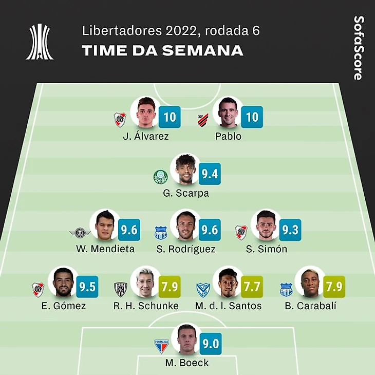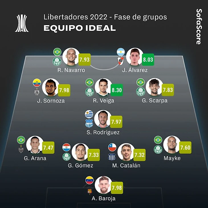Отмечу стопроцентный результат "Палмейраса". Рафа Наварро стал лучшим бомбардиром с 7 голами,набив статистику на уж совсем никакущем чемпионе Боливии.