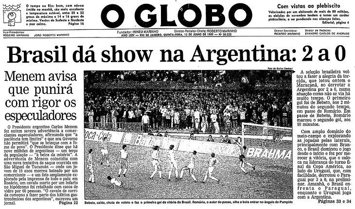 "По-другому и быть не могло. Он сделал все, что планировал: стал изюминкой игры, забил два гола и свел с ума торсиду. Он доказал своим критикам, что является одним из лучших нападающих в мире. Бразилия "ромариировала" (сочетание слов Ромарио и фонтанировала,сложно подобрать адекватный перевод оригиналу) своей отвагой и техникой, продемонстрированной во время игры», - описывала газета, на обложке которой был заголовок, кричащий: "Ро, Ро, Ромарио – это ужас".