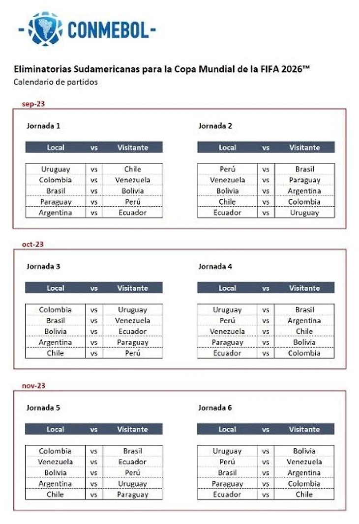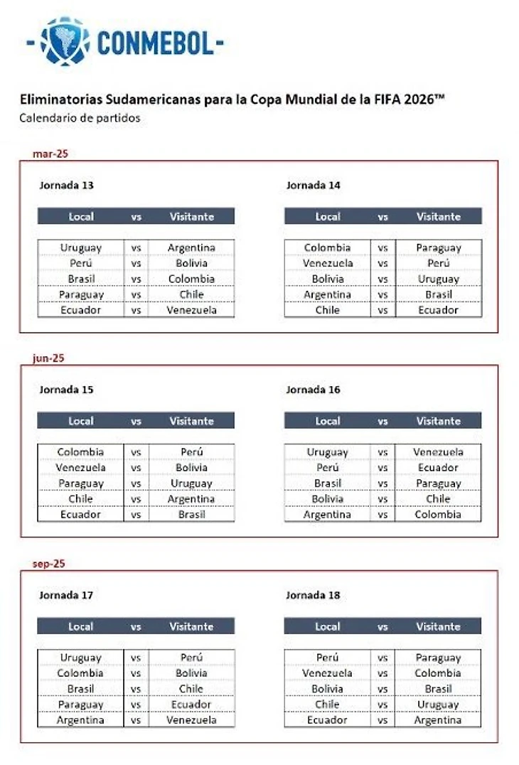 Остальным четырем южноамериканским командам – Чили, Парагваю, Боливии и Венесуэле, оказавшимся в нижней части последнего квалификационного цикла чемпионата мира, – предстоит встретиться с командами из группы B Лиги наций.