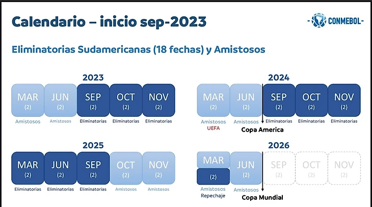 В марте 2024 года все десять южноамериканских команд проведут два товарищеских матча против европейских соперников , и все 20 из этих игр пройдут в Европе. Этот пакет является частью соглашения между УЕФА и КОНМЕБОЛ, как сообщили источники из обеих конфедераций.
