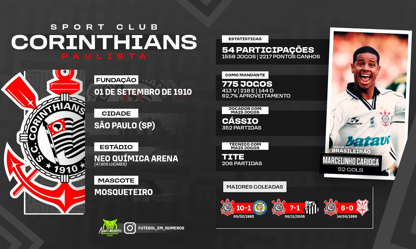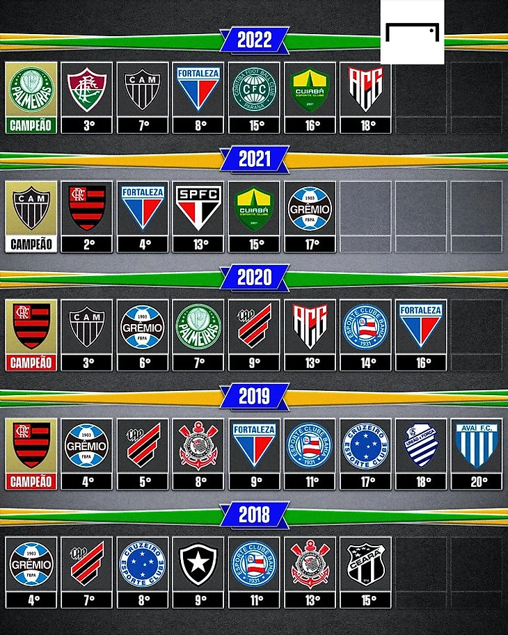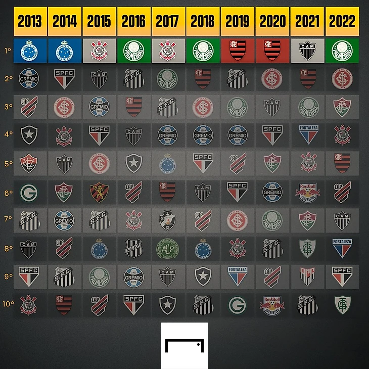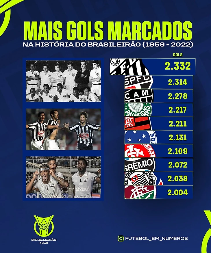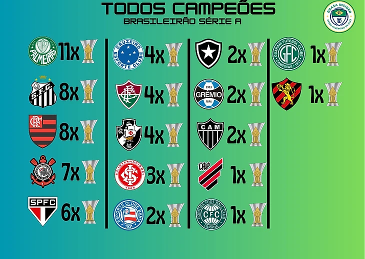 Теперь что касается именно Чемпионата Бразилии. С 1971 года чемпионами Бразилии стали 13 клубов. Наибольшее число побед в активе клуба «Фламенго», а именно семь. На одно чемпионство меньше у клуба «Коринтианс». 7 раз Чемпионат Бразилии выигрывал «Палмейрас», 6-«Сан-Паулу». Четыре раза заветный трофей поднимали футболисты клуба «Васко да Гама». По три раза турнир выигрывали клубы «Интернасьонал», «Флуминенсе» и «Крузейро». По два чемпионства в активе клубов «Гремио», «Сантос» и «Атлетико Минейро». Ну и по разу чемпионский титул примерили клубы «Гуарани», «Коритиба», «Спорт Ресифи», «Баия», «Ботафого» и «Атлетико Паранаэнсе».