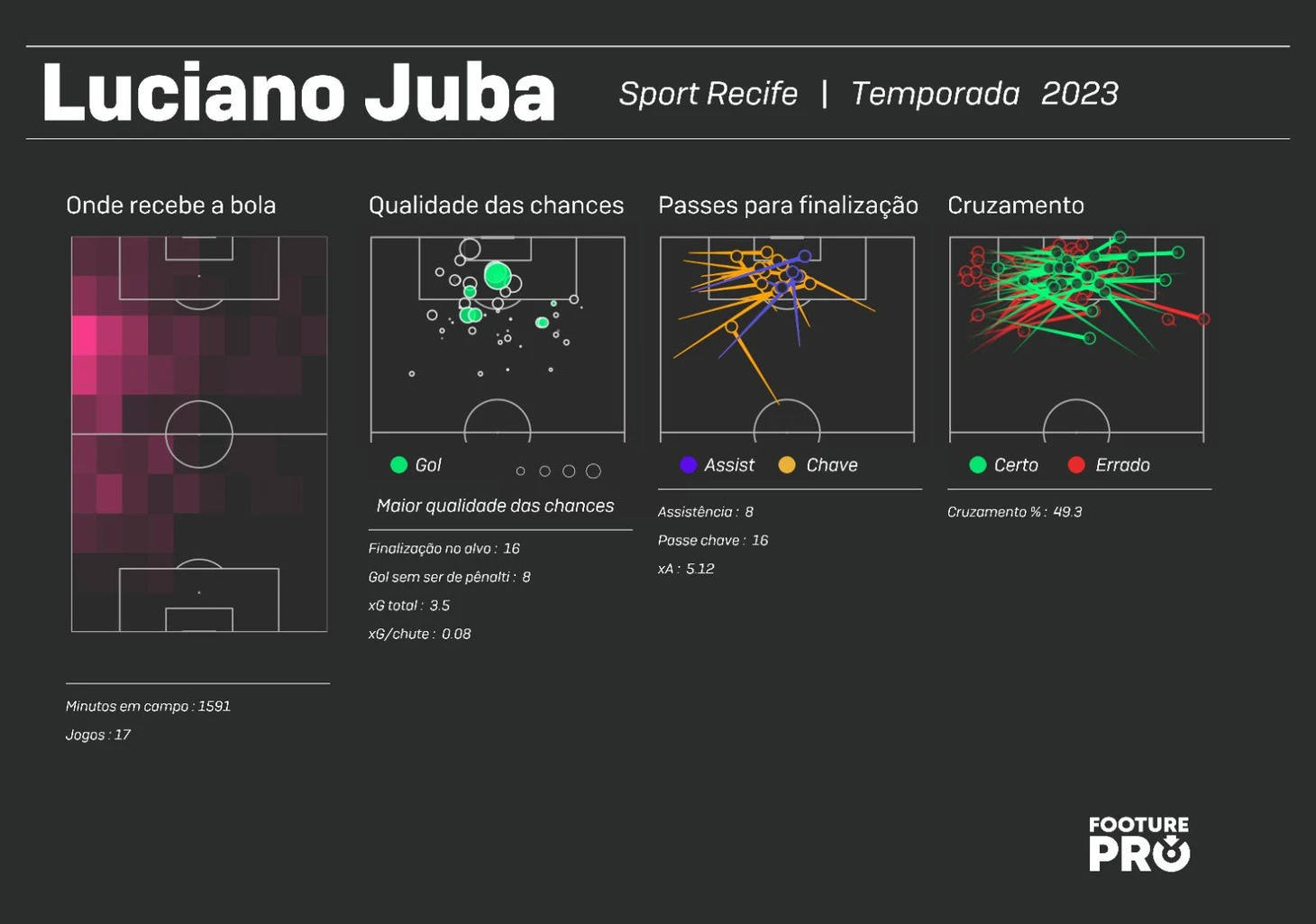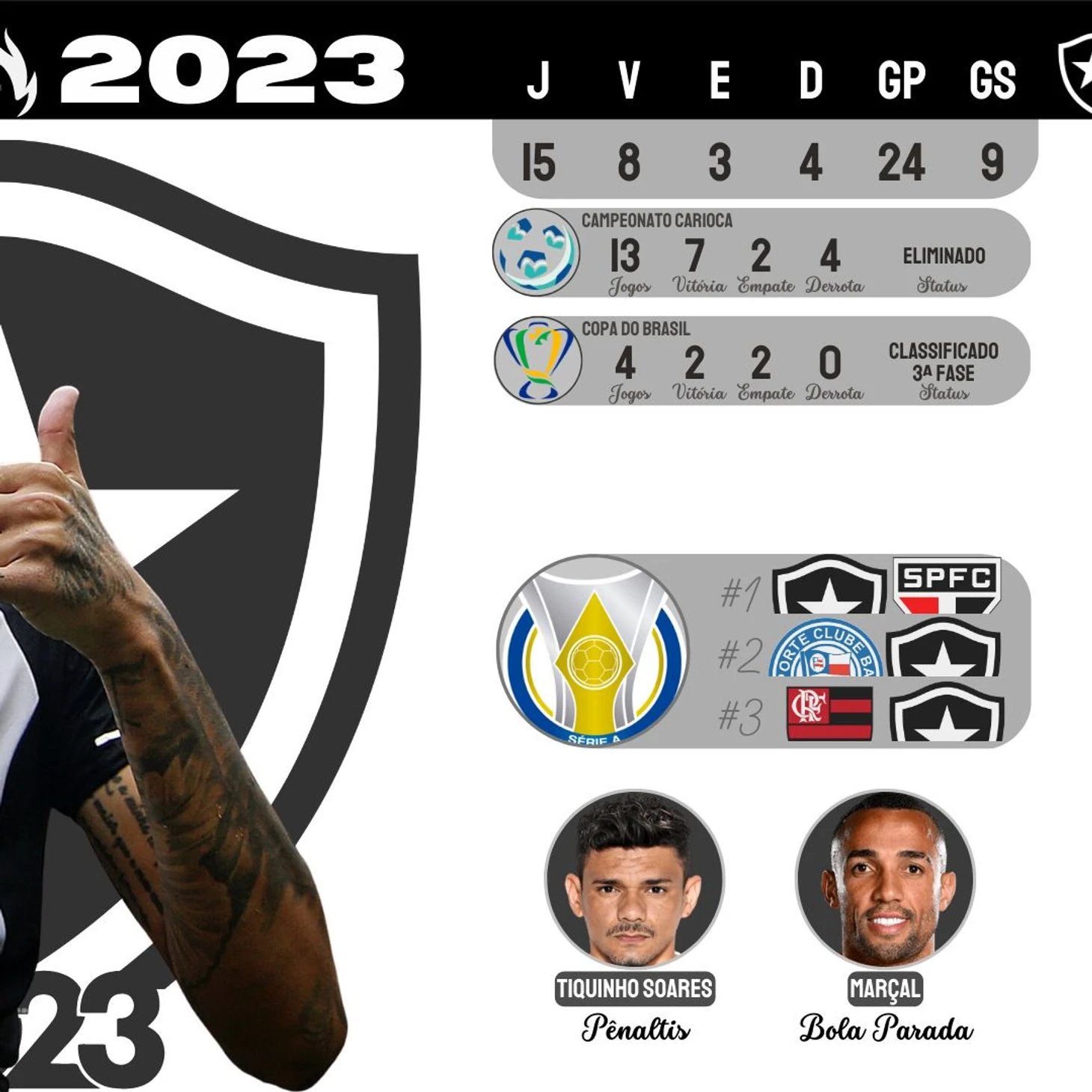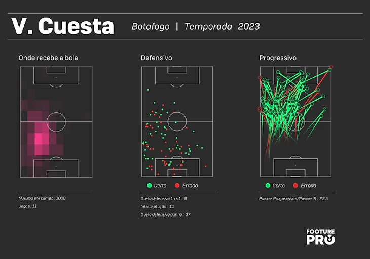 Каштро входит в сезон, когда у него в руках добротная, укомплектованная команда, с 2-3 кандидатами на позицию. Здесь не только старожилы типа Куэсты, лидера команды в свои 35- Виктор очень важен для «Ботафого» из-за его умения находить форвардов длинной передачей (точность 60%)
