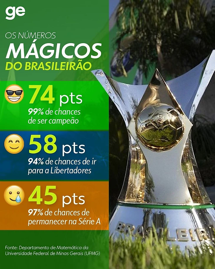 Чтобы стать чемпионом обычно хватает 74 очка,для Либертадорес достаточно 58, а чтобы не вылететь-45.