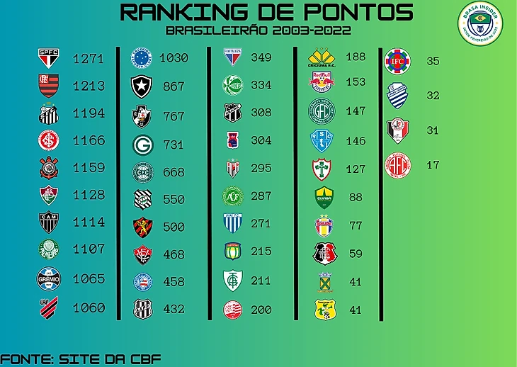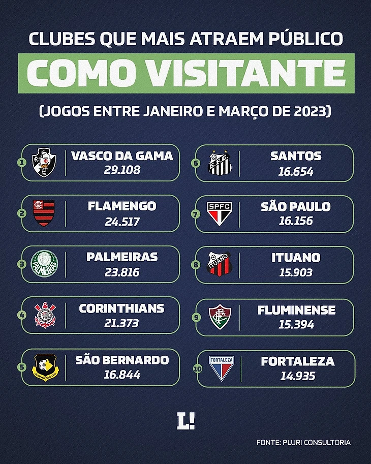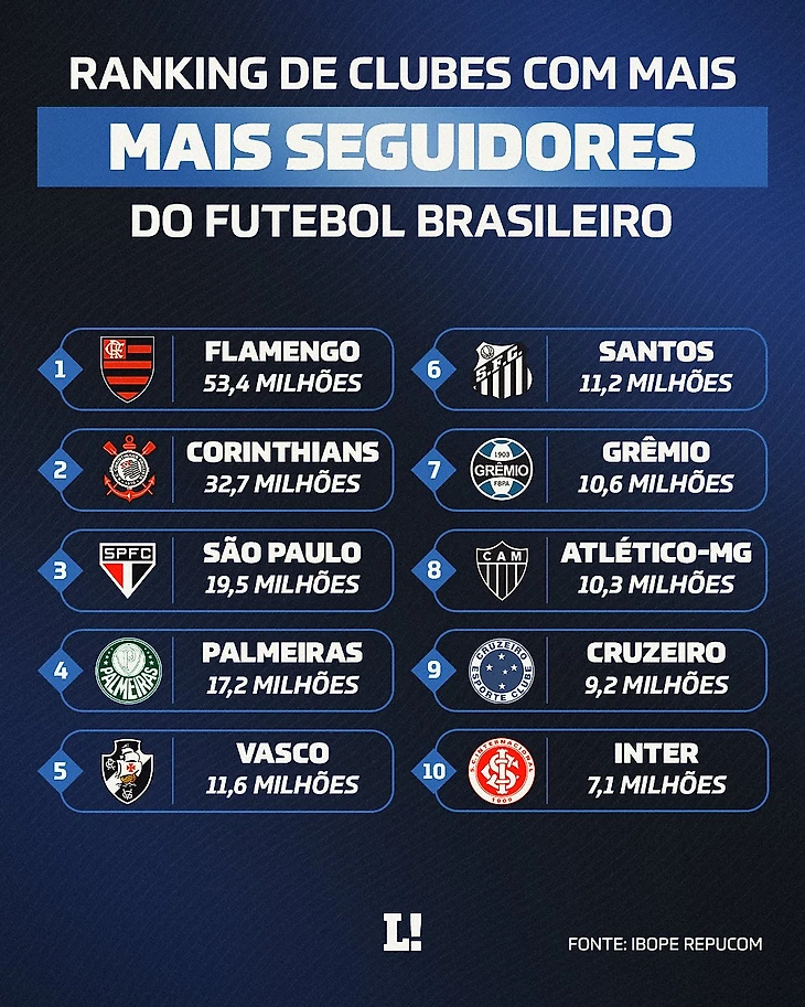 Ibope Repucom опубликовал список клубов с наибольшим количеством подписчиков в бразильском футболе по состоянию на март 2023 года. В рейтинге учитывается количество подписчиков в Facebook, Twitter, Instagram, Youtube и TikTok.