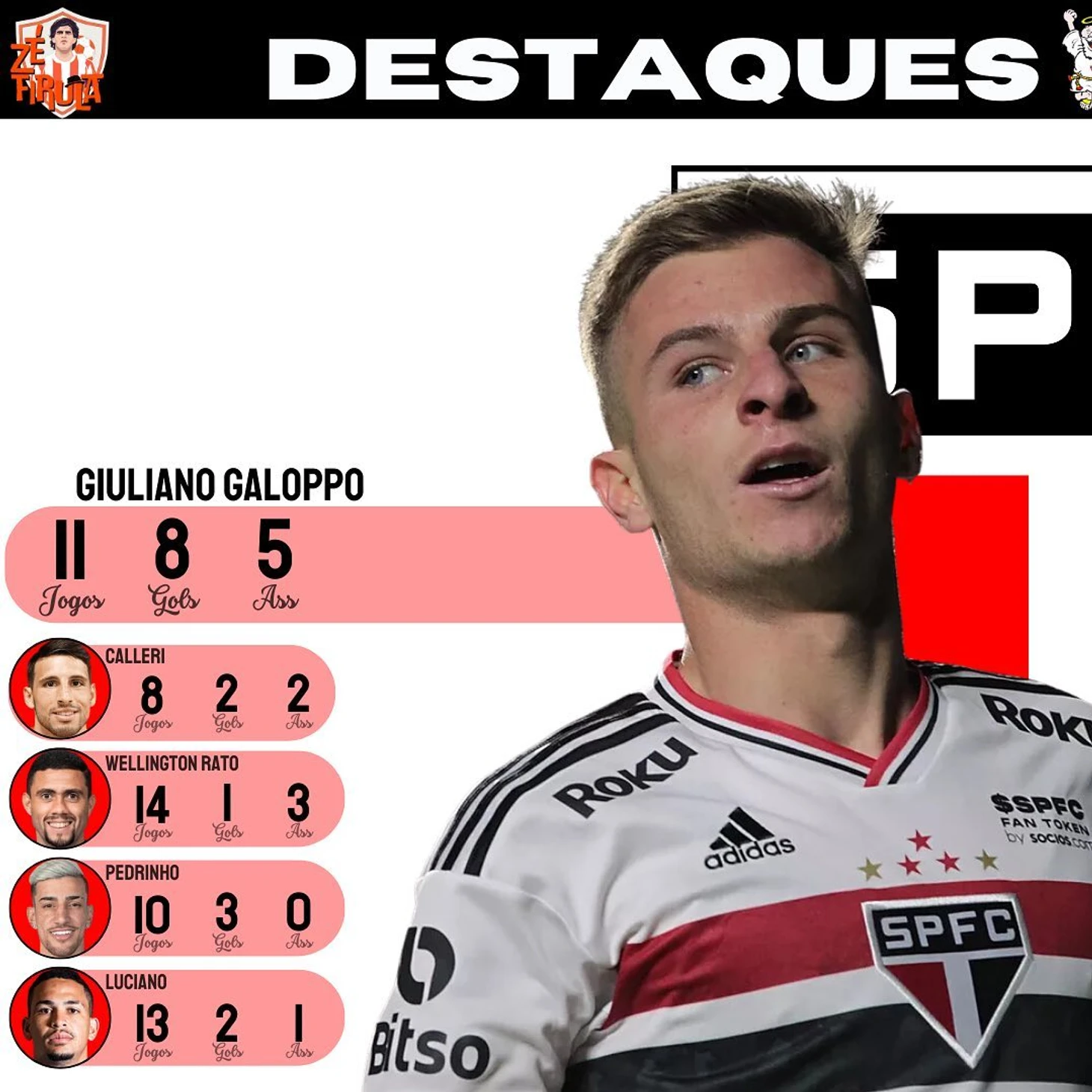 Селекционный отдел команды не сидит на месте и сейчас. Среди последних подкреплений опытный загейро Виктор Уго, хорошо известный по "Палмейрасу" и игравший последние сезоны в Турции, а также вроде как в финальной стадии переговоров одно из открытий "Спорта" левый полузащитник Лусиано Жуба, на счету которого 12 голов и 11 результативных передач в 23 играх этого года. Обращает на себя внимание его довольно высокий процент точных навесов -49,3% и 24 передачи под удар, значит Эвералдо будет обеспечен шансами.