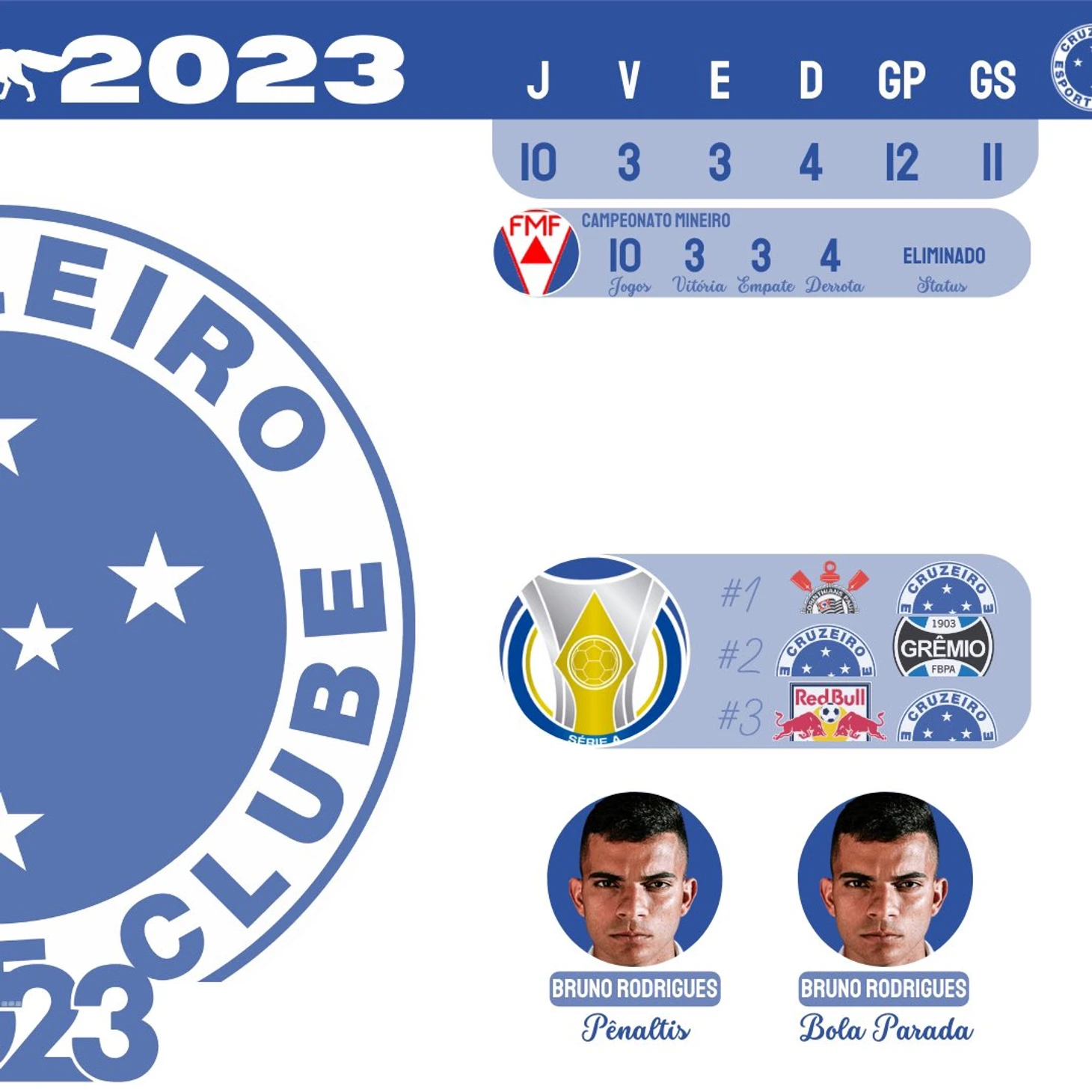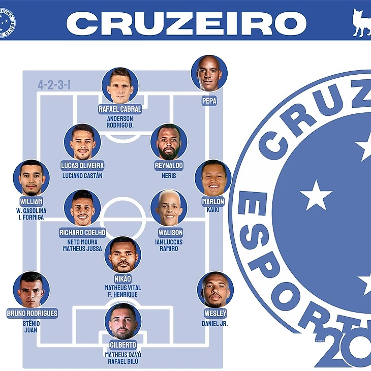 "Крузейро" усилился по средствам. Жибагол, он же Жилберто никому не уступает роль наконечника, на фланги атаки куплен Уэсли из "Палмейраса" для конкуренции с очень интересным Даниэлом Жуниором, на правый фланг обороны выписан Виллиам, известный по "Вольфсбургу" и Уэсли Газолина, с помпой уходивший из молодежки Фла в "Ювентус", но по факту не заигравший даже в Швейцарии.