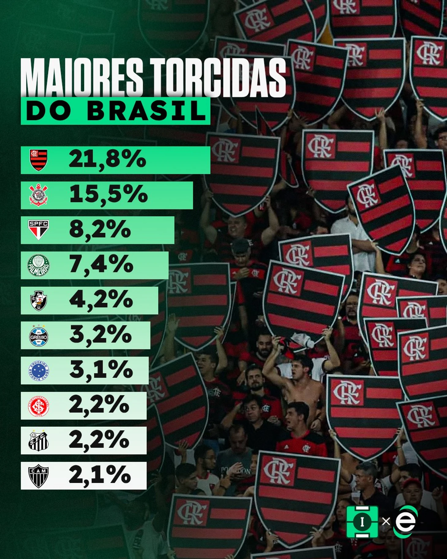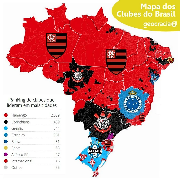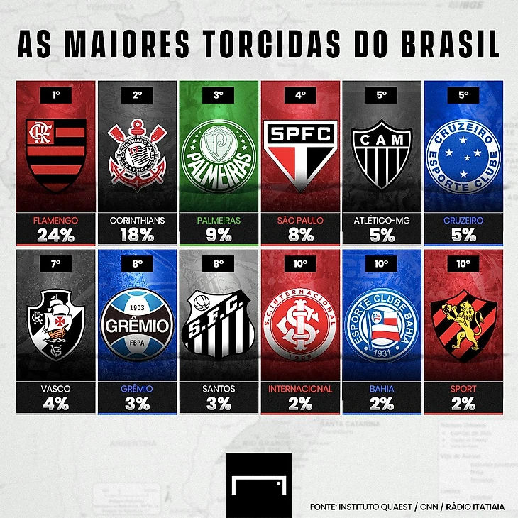 Рейтинг самой большой армии болельщиков в Бразилии согласно опросу, проведенному газетой O Globo совместно с институтом Ipec.