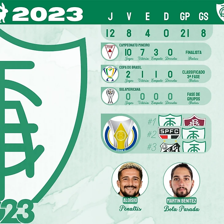 "Америка Минейро" начинает этот чемпионат Бразилии с большими надеждами и усиленной командой. Коэльо хочет сохранить поступательное развитие и продолжить беспокоить топ-команды. Десятое место в прошлом сезоне доказало, что они на правильном пути. Финалист Минейро этого года, обладатель лучшей атаки и второй лучшей защиты, Вагнер Мансини держит в руках чрезвычайно уверенную команду и знает, чего она может достичь.