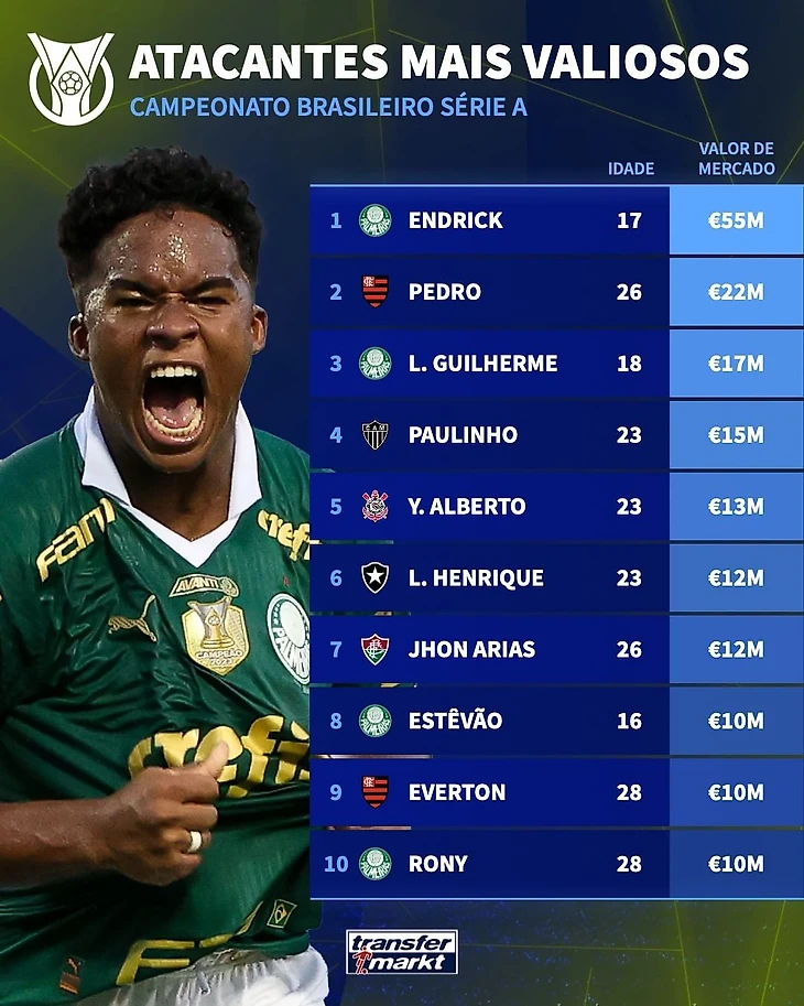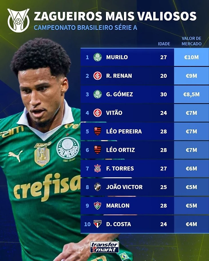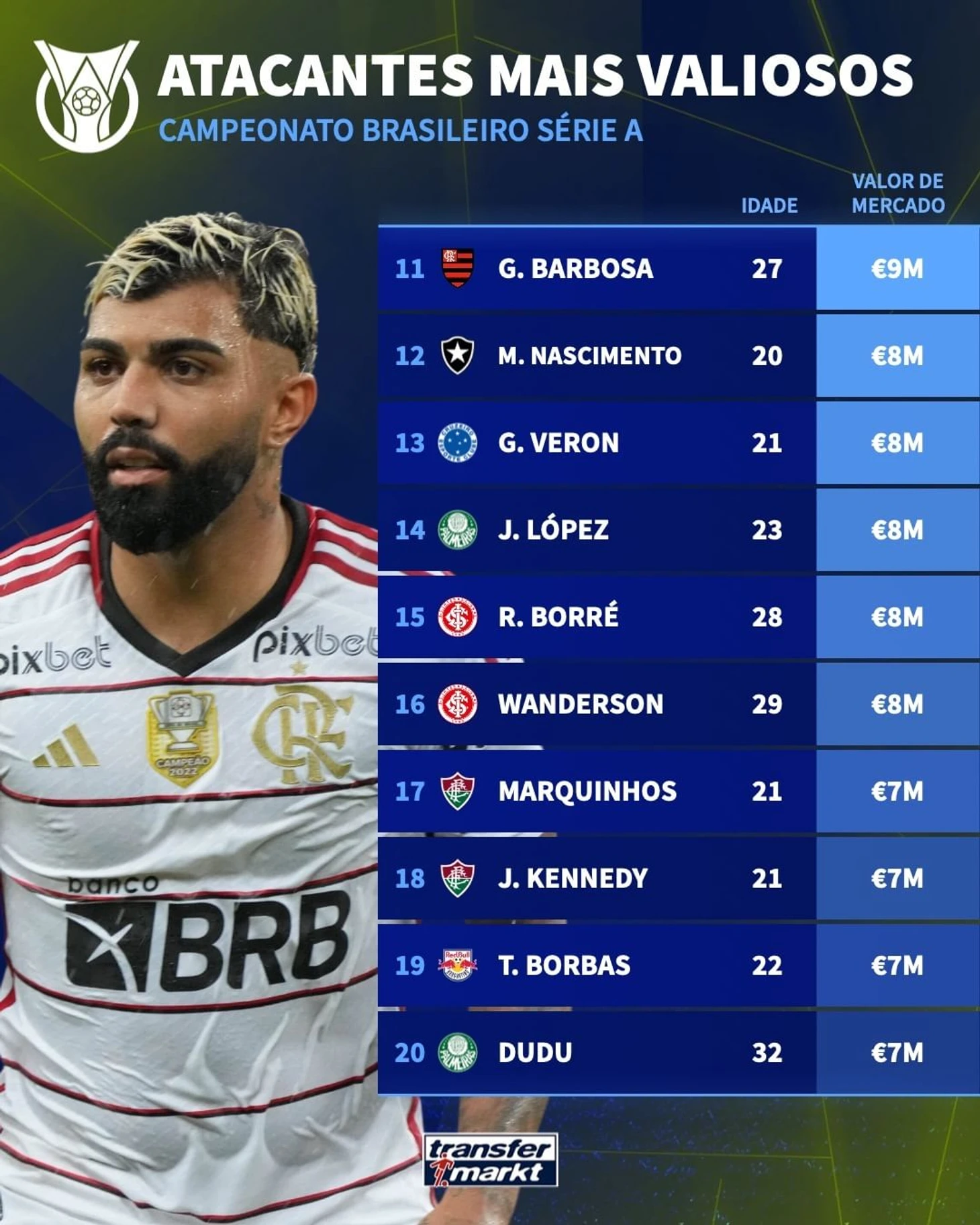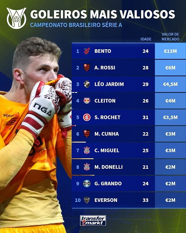 Начался чемпионат Бразилии и давайте посмотрим на самые его ценные кадры по версии Transfermarkt. Сначала общим списком, а потом с разбивкой по позициям