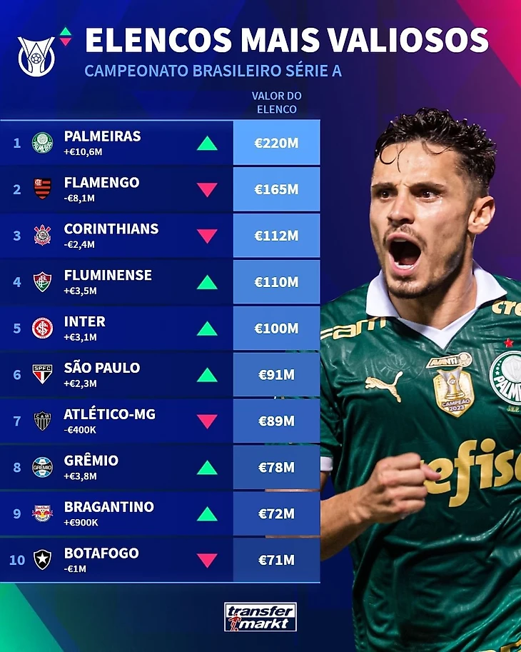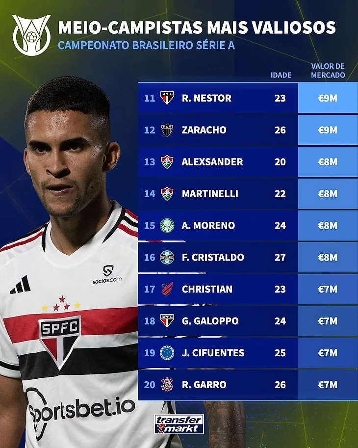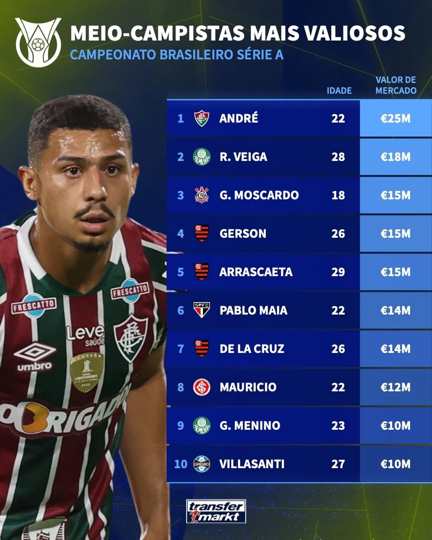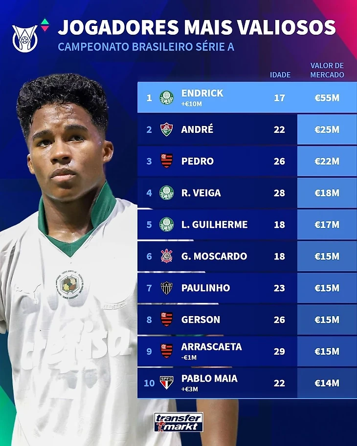Начался чемпионат Бразилии и давайте посмотрим на самые его ценные кадры по версии Transfermarkt. Сначала общим списком, а потом с разбивкой по позициям