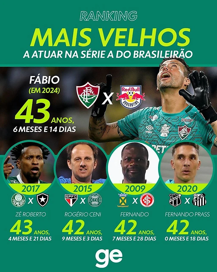 Фабио, вышедший на поле «Мараканы» освежил один рекорд (по количеству сыгранных матчей) и поставил 2 других – как самый возрастной участник и как игрок с максимальным участием в турнирах-этот чемпионат стал для него 23-им..