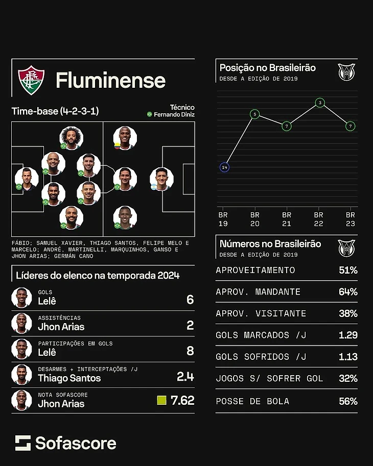 Почти два года работы Диниза вселили в команду большую веру в философию игры, и что ей нужно следовать в самых неблагоприятных ситуациях. Включая матчи, в которых все идет не по плану и удаляются игроки «Флуминенсе». Всегда позитивный и лидерский настрой таких игроков, как Гансо, Марсело и Фелипе Мело, усиливает эту тенденцию, даже когда они не так хороши по отдельности.