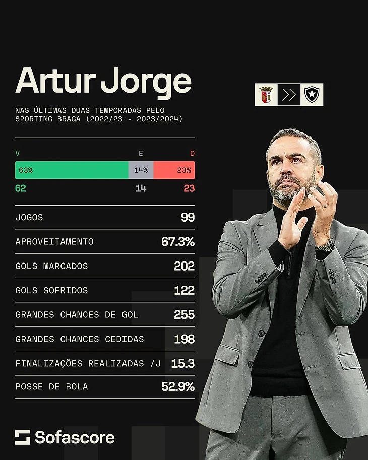 Он выиграл Кубок лиги и на протяжении двух лет входил в четверку лучших в португальском чемпионате. Жорже вывел «Брагу» в групповой этап Лиги чемпионов, у него была очень атакующая команда, но относительно уязвимая в обороне. Посмотрим, как будет развиваться его работа в «Ботафого». С одной стороны авантюризм, с другой – сыгравшись в обороне и пополнившись тем же Алланом, способным контролировать весь центр поля, команда может найти тот самый идеальный баланс, который позволит не вымучивать результат как в прошлом сезоне, а пытаться играть от себя.