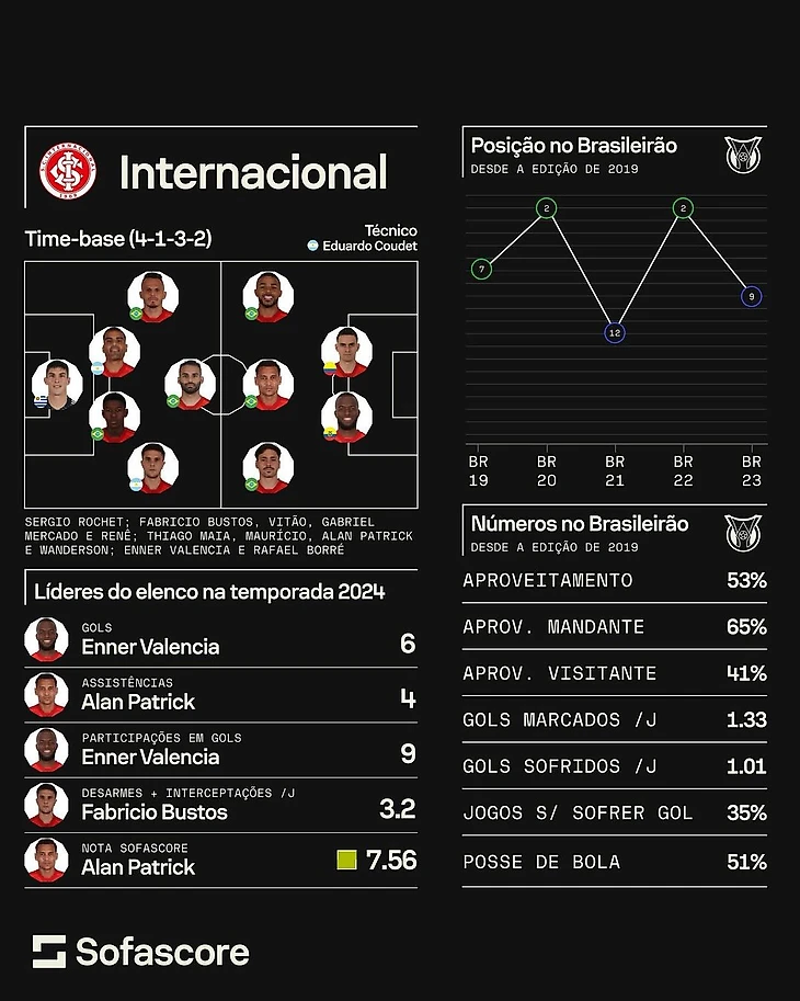 Да и на уровне штата команда с «Бейра-Рио» не выходила в местный финал с 2021 года и не выигрывала чемпионат штата уже восемь лет. Последним соответствующим амбициям титулом была Рекопа Южной Америки в 2011 году.