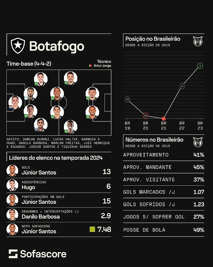 На первых 3 фото изображен расширенный состав с расстановкой, потом как команда провела начало сезона (штат, Кубок Бразилии и континентальные соревнования) и самые результативные игроки.