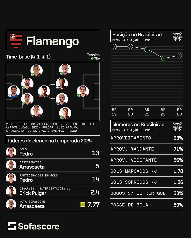 Конечно заранее отдавать клубу из Рио первое место опрометчиво, но нельзя отрицать, что «Фламенго» полностью соответствует всем важнейшим критериям и требованиям для завоевания титула. У Тите команда практически без слабых мест.