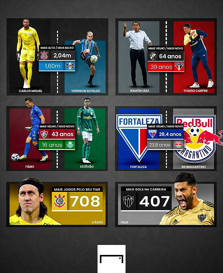 Глядя на заявки можно подметить самого высокого и самого маленького игрока, самого опытного и молодого тренера, самого старого и молодого игрока. Больше всего из заявленных в карьере сыграл Кассио, забил-Халк. «Форталеза» самая «старая» команда, «Брагантино» как и положено любому клону из империи Ред Булл самая молодая.