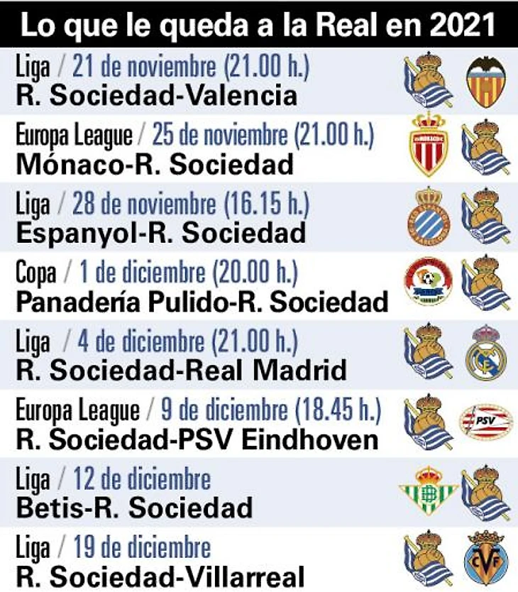Менее чем через месяц команда Иманола снова будет подвергнута испытанию, хотя на этот раз, в отличие от того, что произошло ранее, «Реал» восстанавливает важные детали, которые должны обеспечить команде прочность, сегодня намечено возвращение Микеля Оярсабала. Набирают форму такие игроки, как Рико, Барренетчеа и Сильва, вполне вероятно, что до конца этого марафона команде смогут помочь Илларраменди и Гуриди.
