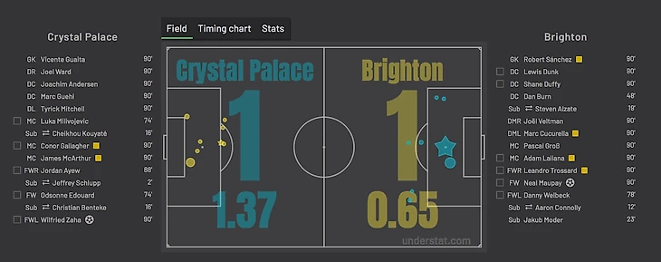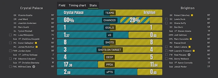 "Пэлас" переиграл "Брайтон" по xG (в первую очередь из-за убойного момента Айю, который он не реализовал).