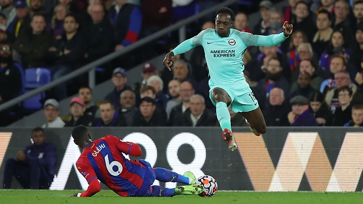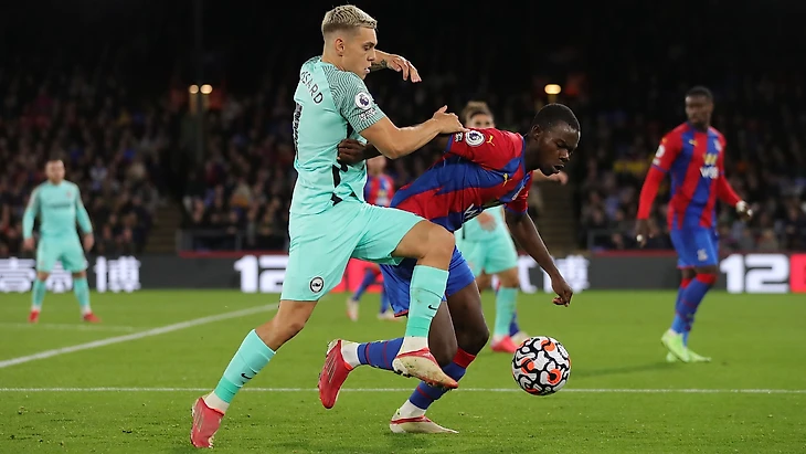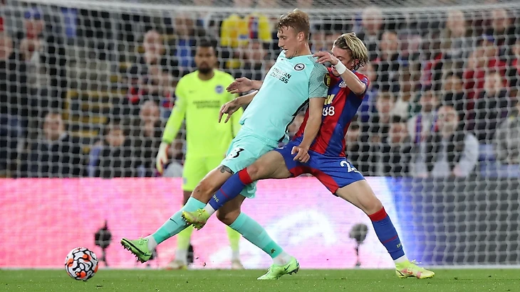 С первых минут матча пошла равная борьба. Команды высоко прессинговали, создавали подходы. Казалось, что к середине первого тайма "Брайтон" забрал инициативу, так как создал больше опасных моментов. В ходе одного из них, произошел крайне спорный эпизод - Санчес круто выбил мяч на Уэлбека, Дэнни ворвался в штрафную и защитник "Пэлас" начал его толкать, причем достаточно активно. В итоге Дэнни не смог нанести сильный удар и Гуаита забрал мяч в руки. По-моему это пенальти.