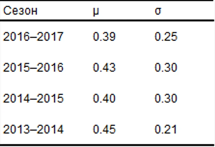 Также исследователями была изучена соревновательность чемпионата, анализируя положение команд сезона 2016/17 и предыдущих сезонов. Для каждого сезона была рассмотрена разность в очках между первой и последней командой чемпионата. Затем рассчитывалось среднее и стандартное отклонение разности очков, нормализированное относительно очков первой команды для всех n команд, что в итоге использовалось для измерения соревновательности чемпионата. Чем меньше данные величины, тем более непредсказуемым и интересным считается чемпионат, в чём немаловажная заслуга сбалансированного календаря. Из таблицы видно, что соревновательность в сезоне 2016-2017 выше, чем во всех предыдущих сезонах.