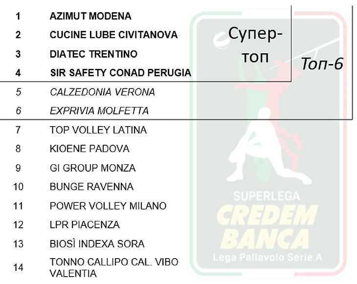 Первый матч между большой четвёркой состоялся только в 6-ом туре – Трентино принимал Перуджу, тем самым удовлетворив требование об отсутствии больших матчей в первых турах чемпионата. Но в тоже время календарь не пожалел Перуджу – три топовых соперника подряд в 6,7 и 8-ом турах. Хороший повод задуматься о дополнительных ограничениях, чтобы распределить большие матчи равномернее по сезону.