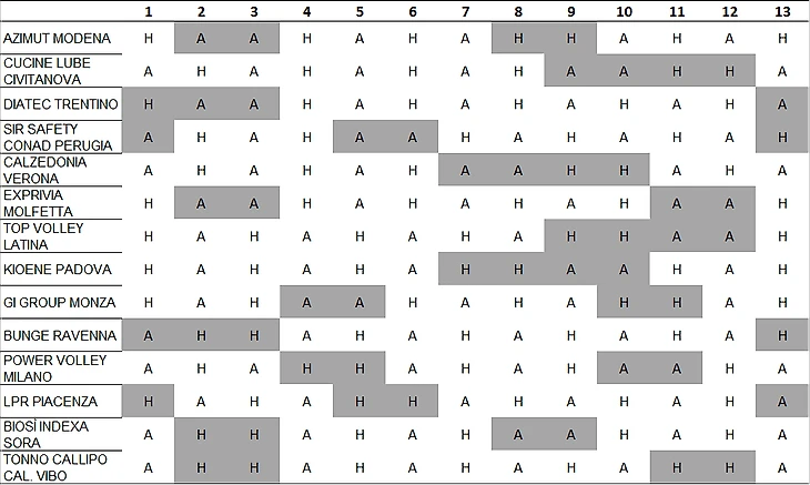 Вопросам составления календарей уделяется большое внимание во всех ведущих спортивных лигах мира. Ведь от качества этого процесса зависит как привлекательность соревнования для всех заинтересованных сторон, так и равенство участвующих в нём команд. В основе определения дат матчей и играющих команд лежат сложные комбинаторные задачи оптимизации, которые решаются как точными методами, так и приближёнными. Каждая спортивная лига имеет свои собственные особенности и задачи календаря должны брать в расчёт особенности страны, в которой эти соревнования происходят. Например, в таких больших странах как Аргентина и США, минимизация расстояний должна быть одной из главных задач календаря. Не обходится здесь и без современных решений. В российском футболе до этого дошли в прошлом году. Календарь сезона 2019/2020 был составлен с помощью учёных Высшей Школы Экономики (ВШЭ). В итоге стало меньше матчей в мороз. В волейболе матчи в мороз нам не грозят, а в случае форс-мажорных обстоятельств по типу нынешних даже суперсовременные алгоритмы не спасут от досрочного завершения сезона. Как бы то ни было, пока до старта нового сезона (хоть никто и не знает, когда он начнётся) ещё есть время, можно перенестись в Италию и посмотреть, как вопросами составления календаря занимаются в лучшей лиге мира.