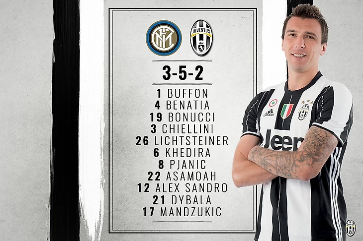 Также с первых минут появился Меди Бенатиа, предоставив возможность отдыха Андреа Барцальи и Марио Манджукич, отсутствие которого в среду многие посчитали главным просчетом Аллегри. Появился с первых минут и ранее анонсированный Штефан Лихтштайнер, который, поговаривают, был в шаге от перехода как раз в стан сегодняшнего соперника «Ювентуса», освежил Аллегри и другой фланг в лице Алекса Сандро. «Бьянконери» не отказались от привычной 3-5-2, однако Макс в предматчевом интервью также намекнул на возможные тактические изменения уже в самое ближайшее время.