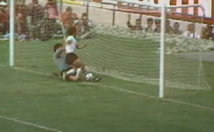 Мяч полетел в ворота, за ним устремились Альбертози и Герд Мюллер. На последних мгновениях Энрико успевает довольно грубо выбить мяч из ворот, а Мюллер падает в сетку. В этом эпизоде - суть всего второго тайма «Матча века» - нереализованный немцами штрафной, косячная оборона итальянцев и убойнейший момент, который лишь чудом не изменил счет на табло.