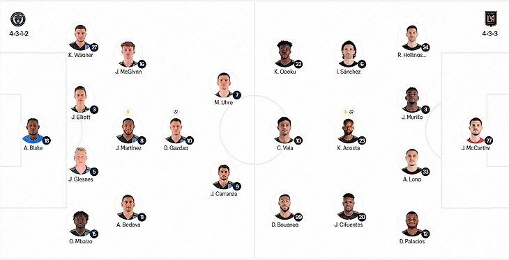 К игре команды подошли без потерь и выставили сильнейшие составы. В воротах Филадельфии один из лучших вратарей лиги Эндрю Блэйк, заслуженный капитан Бедойя, а со стороны гостей главная звезда Карлос Вела и претендент на Золотую бутсу текущего сезона Дени Буанга.