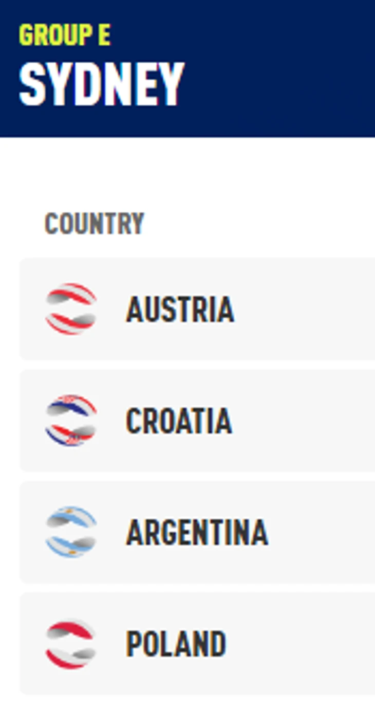 В группе Е все супер в сравнении с некоторыми из предыдущих. Полноценная Австрия, в которой Тим, Офнер, Новак, Юрген Мельцер и Марах; Чорич, Чилич и Ко у хорватов; Шврацман, Пелья, Лондеро у аргентинцев; чуть по слабее Польша, но все-таки Хуркач и Майхржак есть плюс Кубот для пары. Группа зачетная!!!