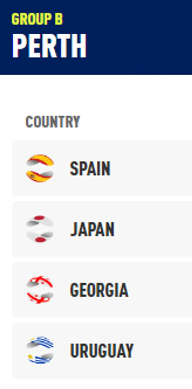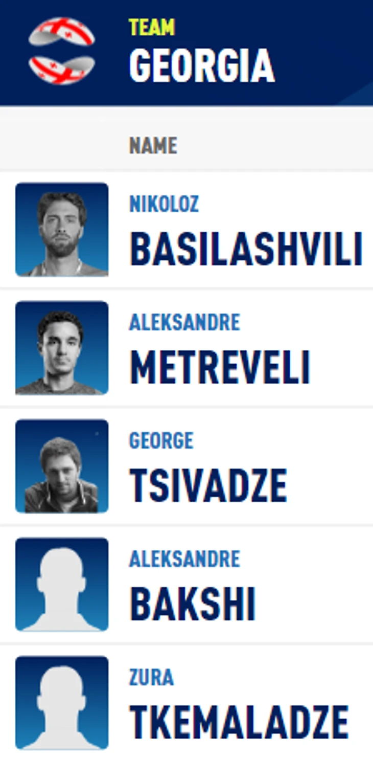 А вот группа B - это провал! У испанцев есть и Надаль, и Баутиста, и Карреньо-Буста, но остальные...У Японии в составе значится Нисикори, но Кеи уже снялся с Aus Open и вообще намекнул на возможное завершение карьеры. Нисиока. Учияма, Соэда и парник Маклэхлан. Не фонтан! Дальше - больше! Грузия! Состав в студию!