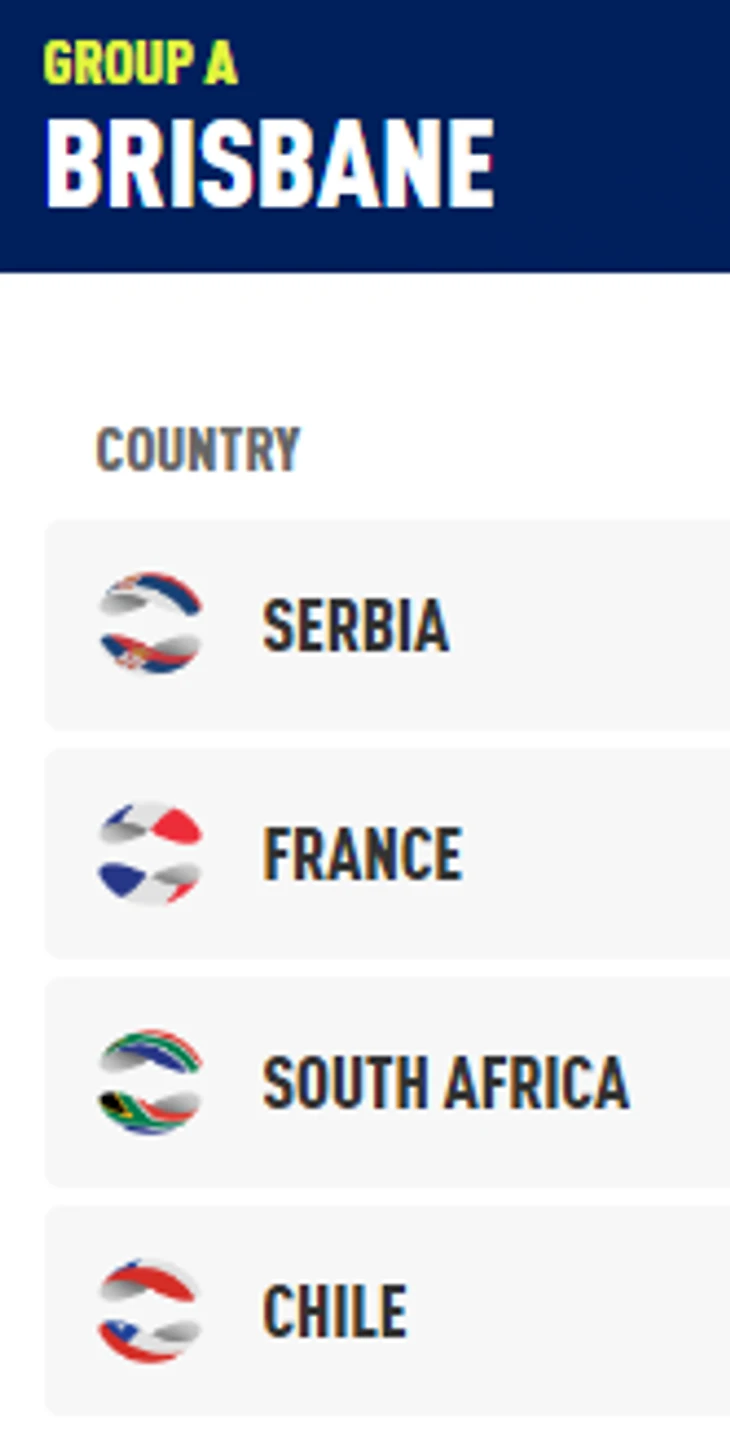 Группа интересная. Джокович и Лайович у сербов, без слабых мест Франция, Гарин и Джарри у чилийцев. Состав южноафриканцев приведу полностью...