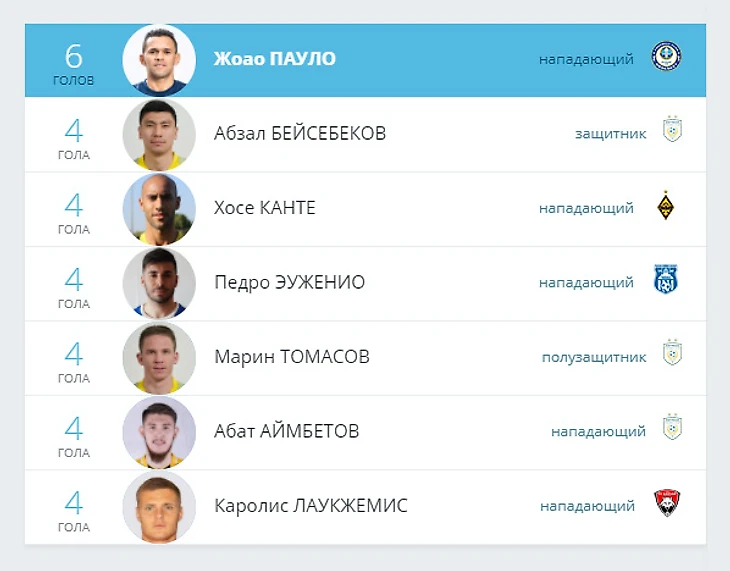 В списке бомбардиров борьба не менее интересна. Правда, здесь после седьмого тура образовался лидер – Жоао Пауло с шестью голами.