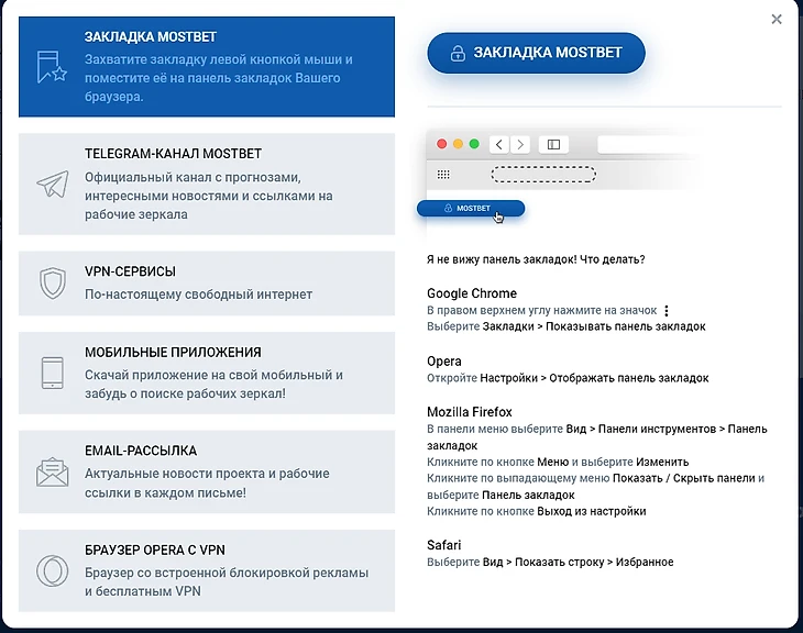 Официальный сайт портала mostbet.com заблокирован в России. Казино предлагает несколько вариантов обхода блокировки: