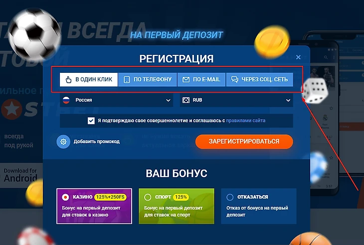 Регистрация и вход Mostbet