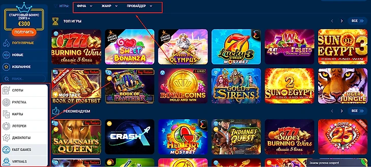 Mostbet предлагает более 3 500 онлайн-слотов и ставки на спорт на одной платформе. В каталоге азартных развлечений представлены слоты, покер, игры с живым дилером, рулетка, баккара, ТВ-игры.