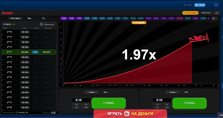 Правила игры: на игровом поле находится самолет, который постепенно поднимается вверх, необходимо забрать деньги до падения самолета. Чем выше поднимается самолет, тем на больший коэффициент умножается ставка.