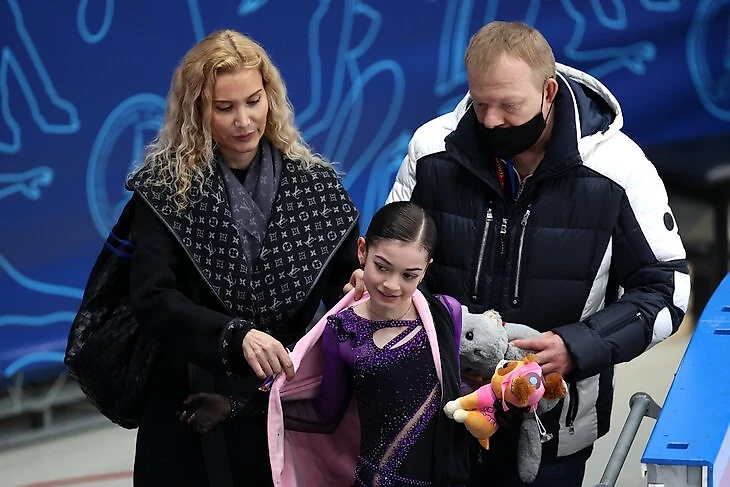 Единственное, что Петросян иногда мешает – психология. Очень редко, но у нее бывают срывы из-за волнения, как в январе-2022 на первенстве России. Тогда совсем не задались разминка перед произвольной и начало программы – Аделия загубила оба четверных, но собралась после падения.