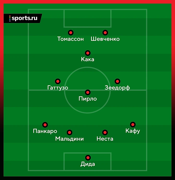 Сзади Неста и Мальдини, в середине Пирло и Гаттузо, впереди Шева и Пиппо Индзаги